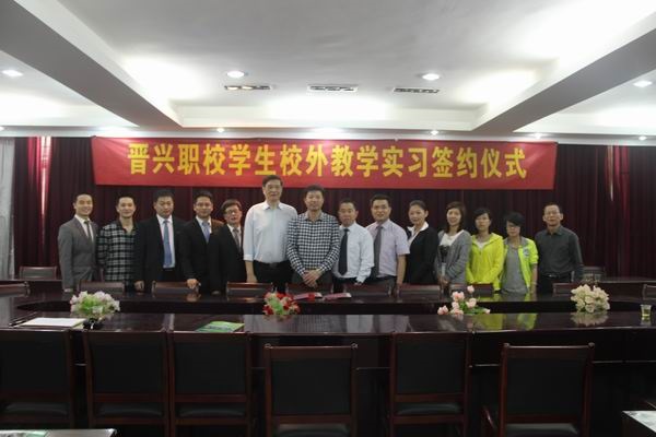 4月29日上午,福建晋江晋兴职校学生校外教学实习签约仪式在学校综合楼会议室隆重举行。出席签约仪式的企业有晋江宝龙大酒店、晋江爱乐国际酒店、晋江爱乐假日酒店、石狮爱乐皇冠假日酒店、晋江金玛国际酒店、晋江马可孛罗大酒店、石狮万佳国际酒店、安踏(中国)有限公司、晋江哈比熊鞋服有限责任公司等9家。